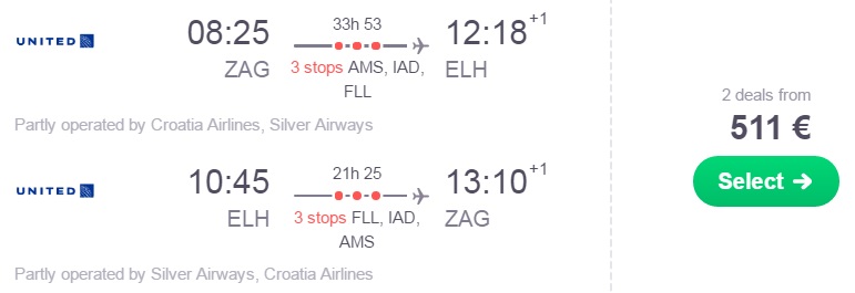 Zagreb (ZAG) – North Eleuthera (ELH) – Zagreb (ZAG), že za 511 eur (ang. povezava skyscanner)