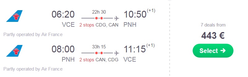 Informacija o letu: 2 postanka, check in prtljaga vključenaBenetke (VCE) – Phnom Penh (PNH) – Benetke (VCE), že za 443 eur (ang. povezava skyscanner)