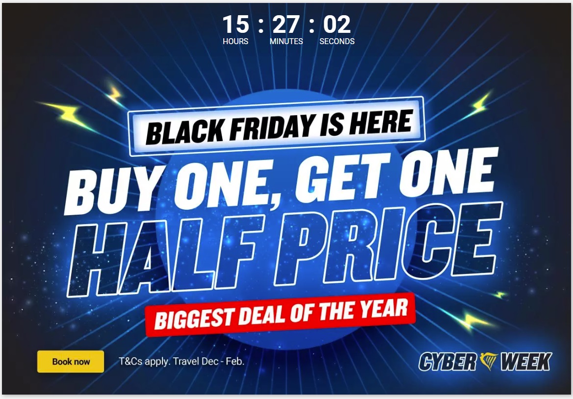 Nizkocenovna letalska družba Ryanair vam DANES 24.11. ponuja akcijo za lete iz okoliških letališč, za termine potovanja od decembra do februarja 2024. Gre za akcijo nakupa vozovnice, pri kateri dobite drugo vozovnico po polovični ceni.