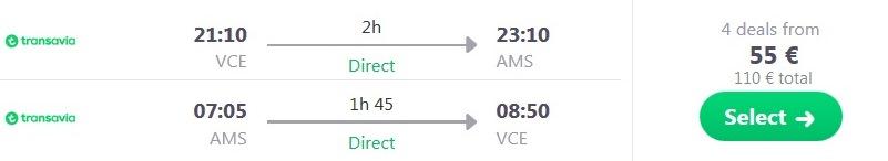 letalo Benetke-Amsterdam, Transavia, prtljaga ni vključena, 55 eur/osebo