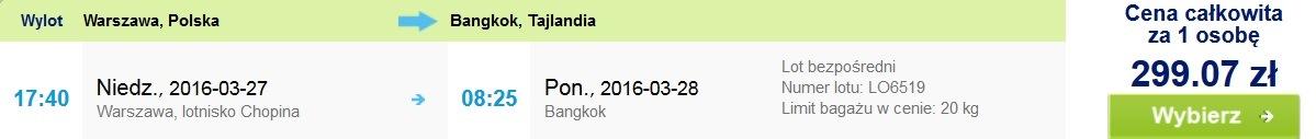 Primer enosmerne letalske povezave iz Varšave v Bangkok (samo termina 20.03. in 27.03.2016) ekonomski razred 69 eur