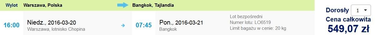 Primer enosmerne letalske povezave iz Varšave v Bangkok (samo termina 20.03. in 27.03.2016) poslovni razred 135 eur