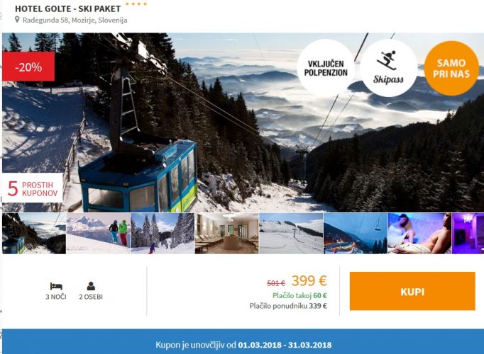 - 3 noči s polpenzionom v Hotelu Golte 4*+ smuč.karte za 2 osebi