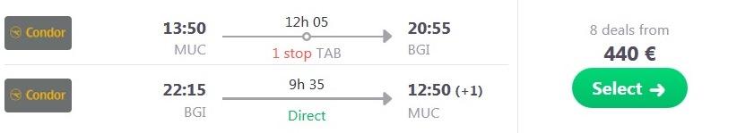 Informacija o letu: 1-2 postanka, prtljaga vključenaMunchen (MUC) – Bridgetown (BGI) – Munchen (MUC), že za 440 eur (angl. povezava skyscanner)