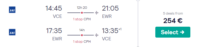 Primer povratne letalske povezave iz Benetk v New York (24.- 29.04.2020)