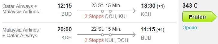 Letalski družbi Qatar Airways in Malaysia Airlines vam ponujata zelo ugodne letalske karte iz Budimpešte na Borneo (Kota Kinabalu) in sicer že od 343 eur na osebo naprej.