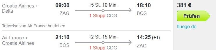 Letalska družba Delta in Croatia Airlines vam ponujata ugodne letalske karte iz Zagreba v Boston že za 381 eur na osebo. V vse podane cene letalskih kart je vključen tudi kos check in prtljage standardnih velikosti letalske družbe Delta in Croatia Airline.