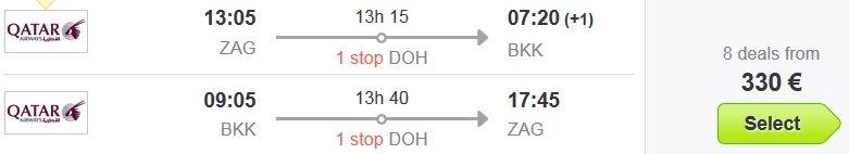 Informacija o letu: 1 postanek, prtljaga vključenaPrimer povratne letalske povezave iz Zagreba v Bangkok (npr termin 23.06.-07.07.2016):