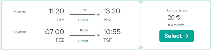 Treviso (TSF) – Fez (FEZ), že za 26 eur/osebo
