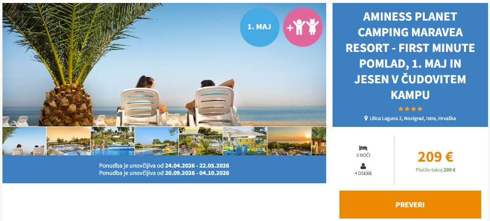 UGODEN PRVOMAJSKI ODDIH V NOVIGRADU! 3 noči v premium mobilni hiški v Aminess Planet Camping Maravea Resort 4* že za 209 eur (4 osebe + otroci)