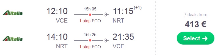 Benetke (VCE) – Tokio (NRT) – Benetke (VCE), že za 436 eur (ang. povezava skyscanner – BOŽIČNI TERMIN)