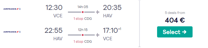 Primer povratne letalske povezave iz Benetk v Havano (22.09. – 30.09.2020)