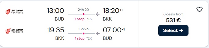 Budimpešta- Bangkok-Budimpešta, že za 531 eur