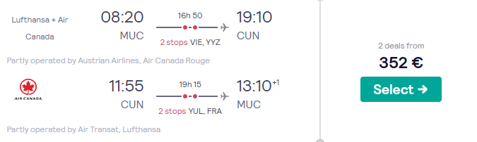 Primer povratne letalske povezave iz Munchna v Cancun (npr. 08. – 18.03.)