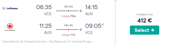 Primer povratne letalske povezave iz Benetk v Austin (29.04. – 07.05.2020)