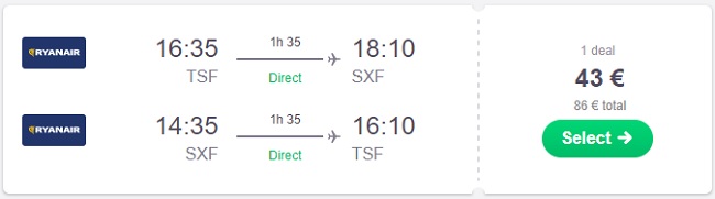 Skupna cena celotnega paketa 3 dnevnega dopusta za dve osebi (letalo + hotel) v Berlinu tako znaša 196 eur (oz. 98 eur na osebo).