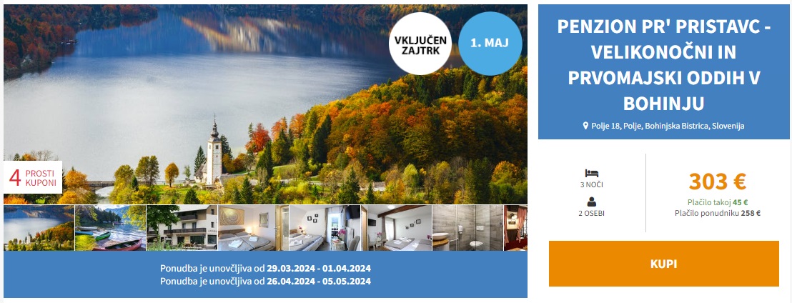 Ponudba je unovčljiva od 29. 3. do 1. 4. in od 26. 4. do 5. 5. 2024