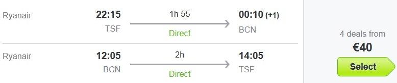 Ugodne letalske karte vam omogoča nizkocenovnik Ryanair z odhodom iz Benetk, kjer je povratna letalska povezava za navedeni termin na voljo, že za 40 eur/osebo, z RUMBO popustom pa že za 27 eur! (v ceno ni všteta prtljaga, z izjemo brezplačne osebne prtljage).