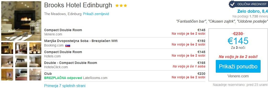 prenocisce3 nočitve, termin 10.03.-13.03.2017, Brooks Hotel Edinburgh, 145 eur/2 osebi