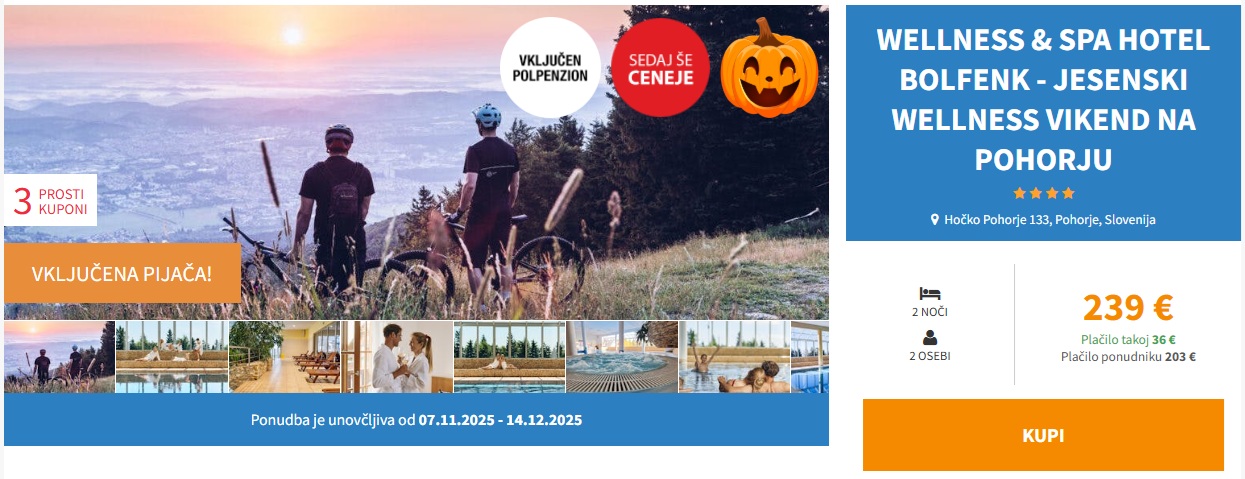 Ponudba je unovčljiva od 7. 11. do 14. 12. 2025 (bivanje od petka do nedelje)