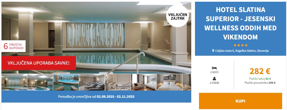 Ponudba je unovčljiva do 2. 11. 2025 (bivanje od petka do nedelje)