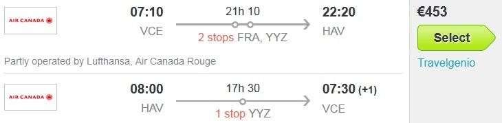 Letalska družba Air Canada vam ponujata ugodno potovanje iz Benetk na Kubo (Havana) in sicer že za 453 eur na osebo. V ceno je vštet tudi kos check in prtljage standardnih Air Canada mer oz. velikosti.