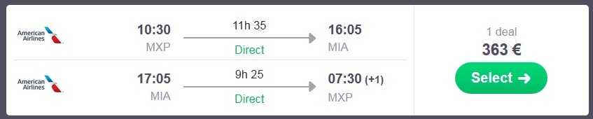 Milano (MXP) – Miami (MIA) – Milano (MXP), že za 363 eur (ang. povezava skyscanner)