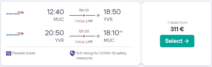 Vancouver (YVR) že za 311 eur
