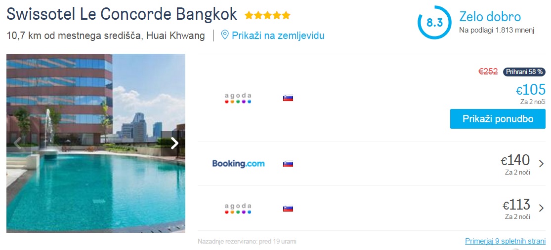 – Rezervacija hotela s 5* Swissotel Le Concorde Bangkok za dve osebi (1 nočitev) za 52,5 eur na povezavi tukaj