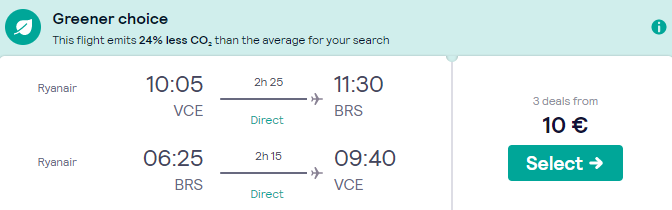 Primer letalske povezave iz Benetk v Bristol (npr. 11. – 18.01.2020)