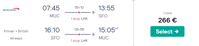 San Francisco (SFO), že za 266 eur