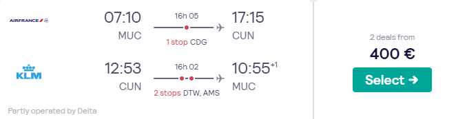 Primer povratne letalske povezave iz Munchna v Cancun (npr. 01. – 17.03.2020)