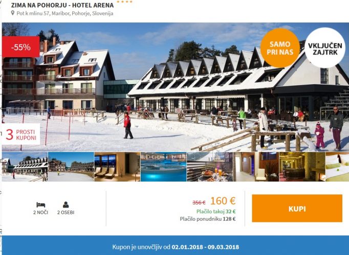 Kupon je unovčljiv do 9. 3. 2018 (doplačilo za bivanje od petka do nedelje znaša 40 €)