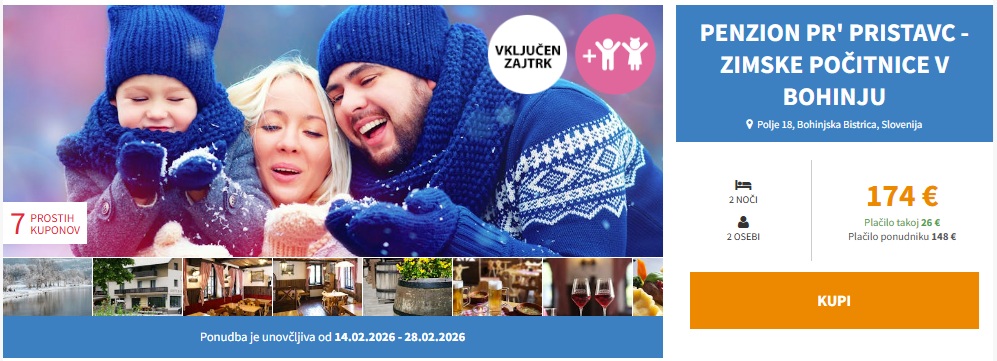 ZIMSKE POČITNICE V BOHINJU! 2 noči z zajtrkom v Penzionu Pr’ Pristavc že za 174 eur (2 odrasla + otroci)